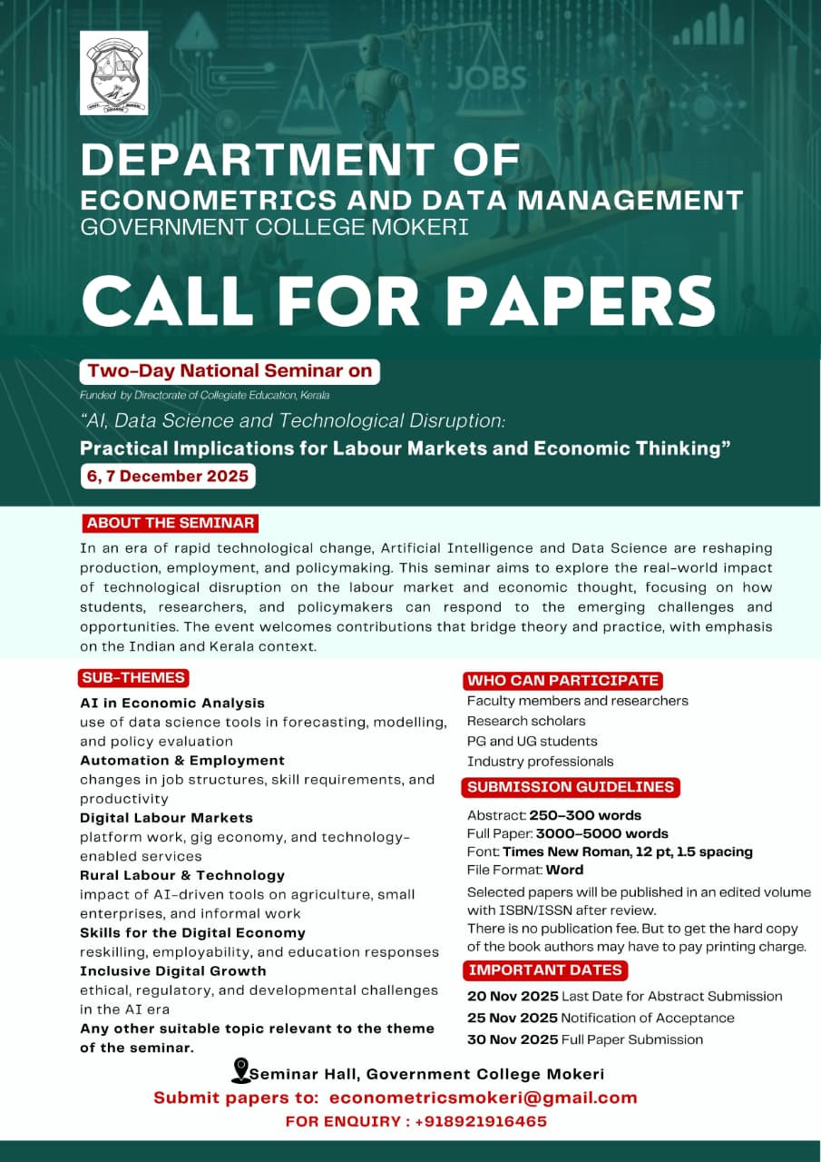 Seminar_Econometrics Seminar on “AI, Data Science and Technological Disruption: Practical Implications for Labour Markets and Economic Thinking”