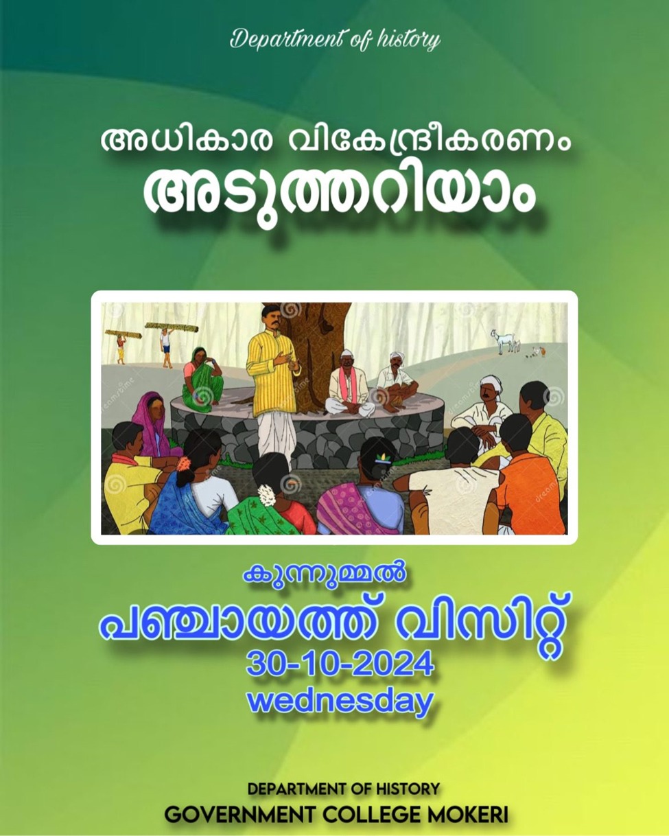 The Department of History at Government College Mokeri was established in 1991 and offers a BA in History Honours degree program (FYUGP). Most of our students come from the rural areas of Vatakara and Koyilandy Taluks, bringing diverse perspectives and rich cultural backgrounds to our academic community. Our department is dedicated to providing students with all the facilities needed for their holistic development. The general library is well-stocked with significant history books, covering major fields and periods, which supports both curriculum and research interests. Additionally, the Lyceum Club offers a platform for students to hone their skills in debates, public speaking, singing, and other co-curricular activities, fostering well-rounded personal growth. We are proud of our high student success rate, with many graduates finding placements in various government and private sectors. Our alumni network remains actively involved in supporting current students and assisting those in need, embodying the spirit of community and mutual aid. Final-year projects focus on local history, allowing students to explore and contribute to the understanding of our heritage. Our local history library, “Mokeri Shelf,” is a treasured resource, preserving valuable records of native history. To deepen their learning, students participate in study tours to historical and archaeological sites of significance, such as Delhi, Hyderabad, and Hampi, providing them with hands-on, empirical knowledge and a tangible connection to history. Vision Mission