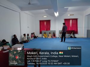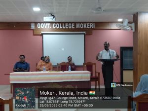 The Literary Forum of Department of English, Govt College Mokeri, organized a class on mental well being for the PG English students on 21/08/25. Dr. Priya P, Professor of Hindi, of Govt Arts and Science College Kozhikode engaged the session. The focus of the program was on the topic ‘thought power ‘ and the importance of goal setting in life.