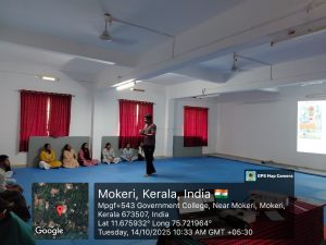 The Department of Research in English of Govt College Mokeri organized a session on Nutrition Health and Wellness for the First Semester MA English students on 14.10.2025. The interactive session was engaged by Dr.Kunjukannan R , Professor of Physical education, Govt College Mokeri. The session was conducted in the context of frequent complaints about various lifestyle illness from the part of the students. The students responded that the session was beneficial as it could provide scientific perspectives about health and also could irradicate many false notion spread by social media platforms. Welcome address of the session was done by the class tutor Nisanth TV and vote of thanks was done by Rishal, student of Ist Semester MA English.